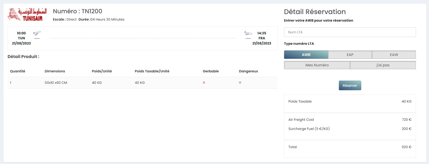Vous recevrez un E-mail de confirmation avec la fiche de réservation et un numéro LTA que vous avez saisi. Aussi, vous pouvez consulter à tout moment votre Dashboard pour vérifier le statut de vos réservations.